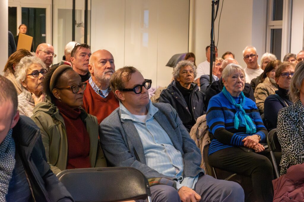 In aanloop naar de brede buurtbijeenkomst in november 2025 voerden we een stevige communicatiecampagne uit. In totaal verspreidden we 950 ansichtkaarten huis-aan-huis in de directe omgeving. Daarnaast kwamen er posters in trappenhuizen, een bericht in het lokale weekblad en een mailing naar eerdere deelnemers. Op de avond zelf organiseerden we twee identieke sessies (om 19u en om 20.30u) om iedereen voldoende ruimte te geven. Meer dan 90 omwonenden en geïnteresseerden bezochten een van beide bijeenkomsten.